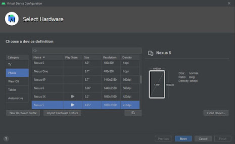 halaman ini kita select hardware memilih jenis emulator yang akan digunakan,